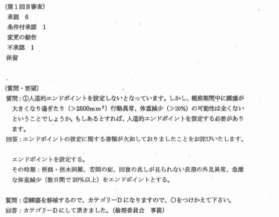 また、日薬理誌の記事(「動物実験審査委員会での審議例」)も参考になりますので、添付させていただきます。