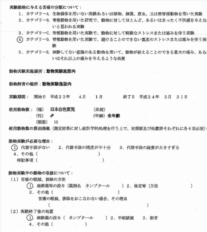動物実験委員会はそれなりに審査を行っているようですが、各申請者の動物福祉への意識や知識はかなり遅れているように思われます。