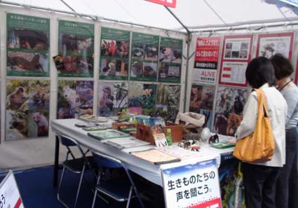 ブースでは、法制度部会のポジションペーパーを展示し、NPO法人トラ・ゾウ保護基金とテントを共有してパネルを展示しました。